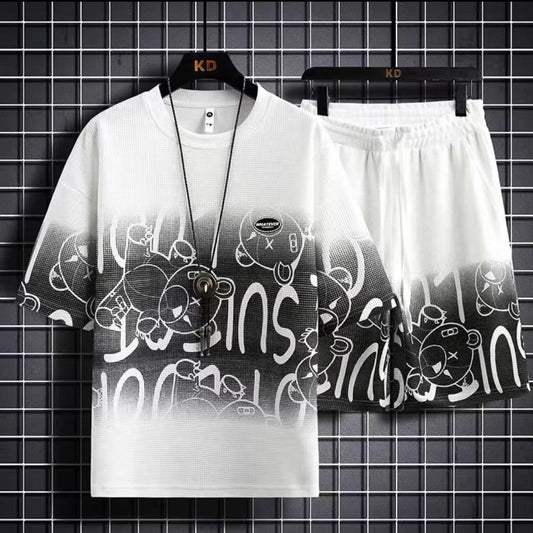 Creative Pattern 2 Piece Fashion Casual Set T-Shirt And Shorts