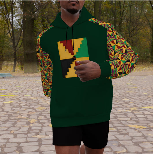 For The Culture Men's Kente Heavy Fleece Raglan Hoodie - Green