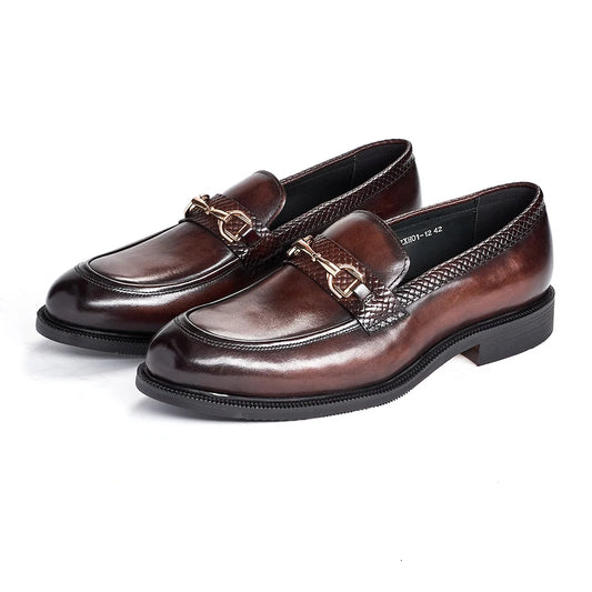 Genuine snake-skin embossing leather with metal buckles high-quality shoes