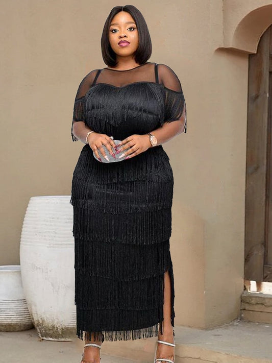 Off-Shoulder Floor-Length Shiny Sequined Chiffon Big Size Gown
