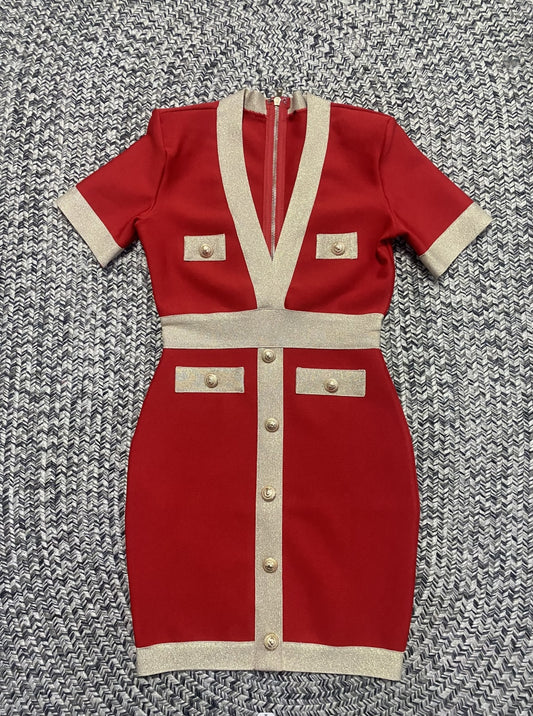 High Quality Women Short Sleeve Sexy V-Neck Bodycon Button Bandage Mini Dress