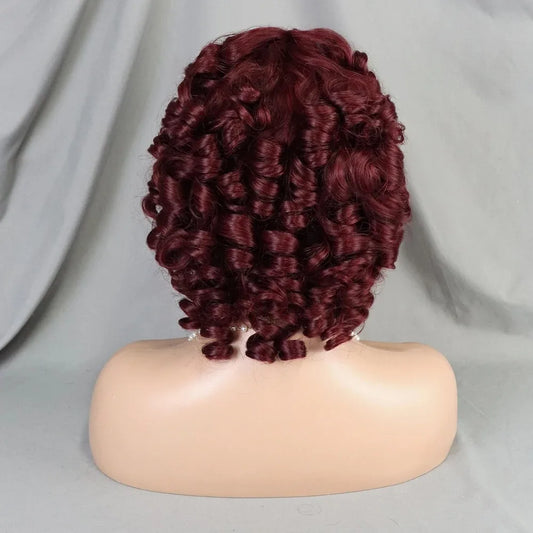 Burgundy 99J Color Short Afro Kinky Curly Glueless Wig