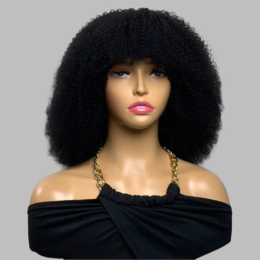 Machine Made 250% Afro Kinky Human Hair Wig With Bang
