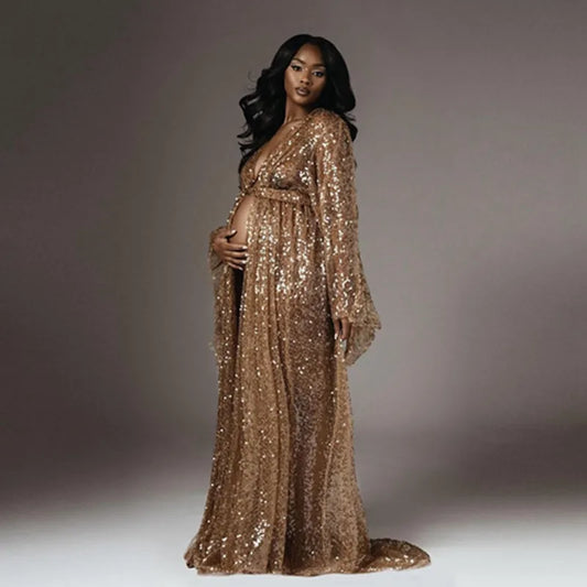 Glitter Sequined Long Maternity Dress For Photo Shoot