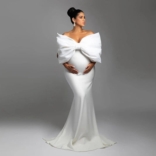 Big Bow Mermaid Strapless Spandex Long Maternity Gowns