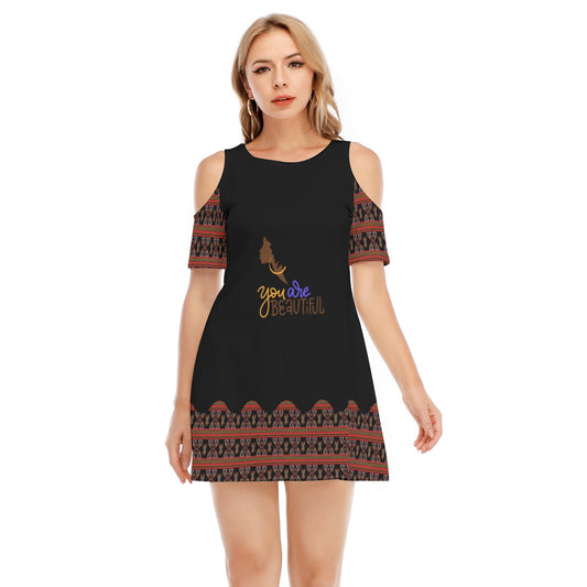 You Are Beautiful Toghu Style Shoulder Cotton Dress - Black