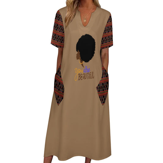 You Are Beautiful Toghu Sleeve And Pocket Casual Dress