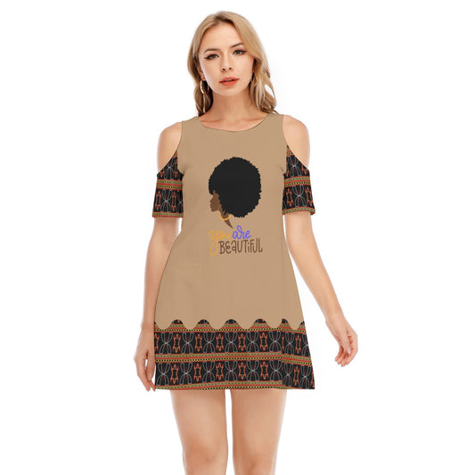 You Are Beautiful Toghu Style Shoulder Cotton Dress - Light Brown