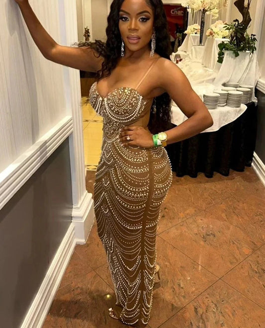 Luxury Sparkly Crystal Rhinestone Pearl Celebrities Gown