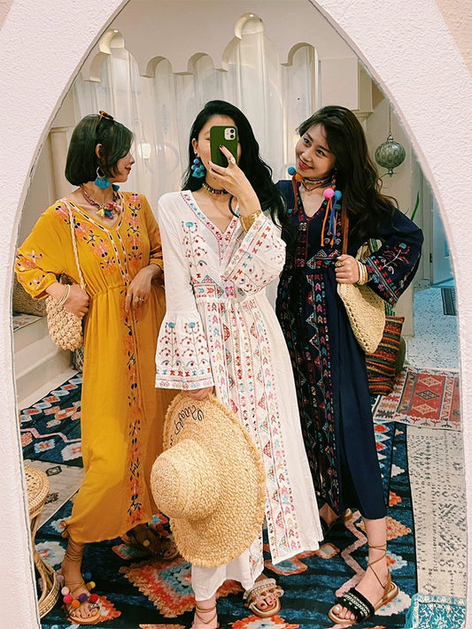 You Are Beautiful Toghu Style Shoulder Cotton Dress - Wine Red