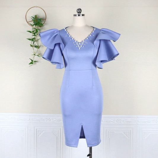 plus Size Ruffle-Sleeve Slit Beaded Dress