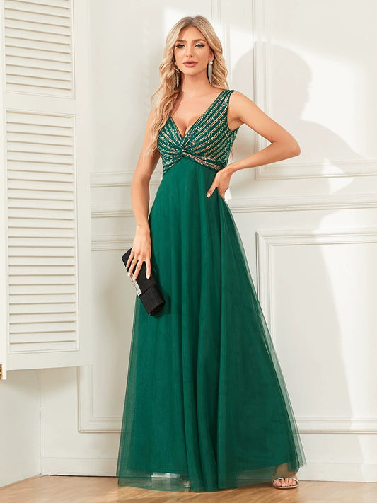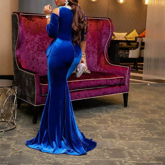 Elegant Off Shoulder Full Sleeve Long Sequin Dress