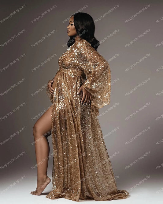 Glitter Sequined Long Maternity Dress For Photo Shoot