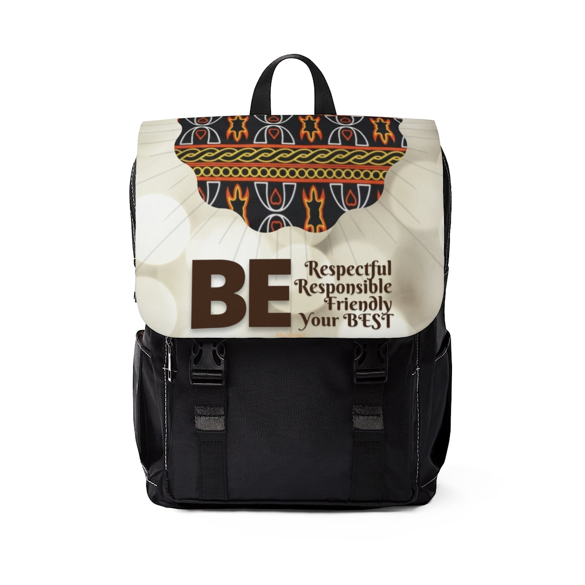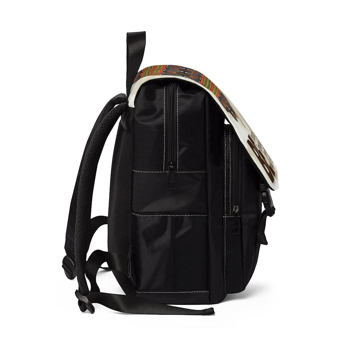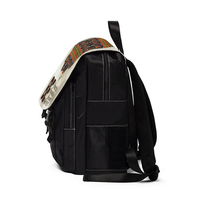 Casual backpack in a classic shape with a front flap design. It is made of durable Oxford canvas. It has two slip interior pockets and one laptop sleeve in the main compartment, a front zipper pocket, and two side pockets.