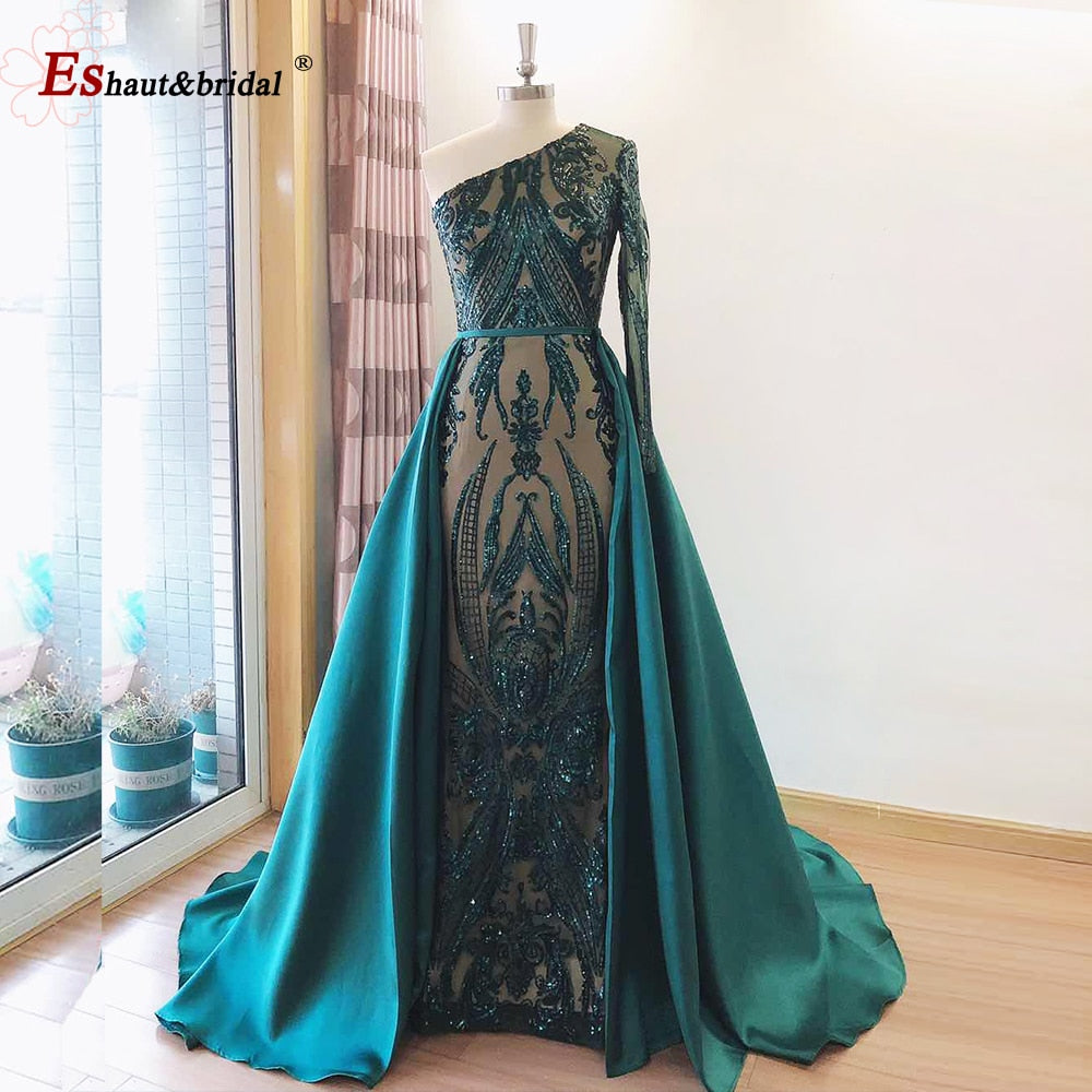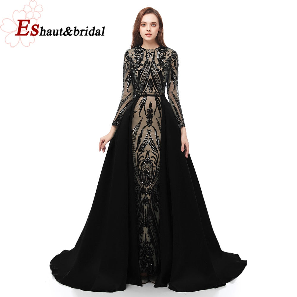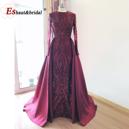 Elegant Long Sleeves Mermaid with Detachable Train Sequined Prom Party Gown