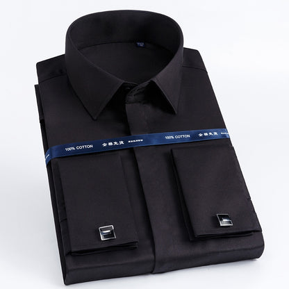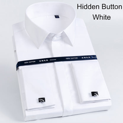 Luxury Cotton French Cuff Button Long Sleeve Men Tuxedo Shirt with Cufflinks