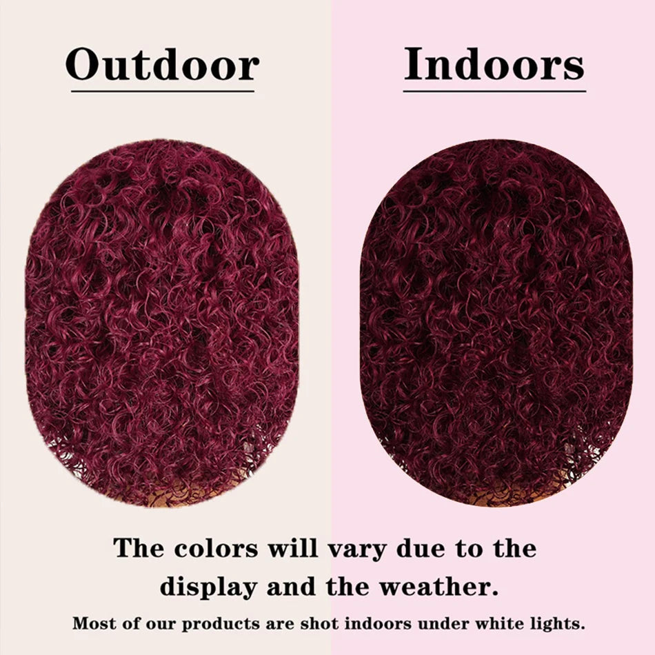 Burgundy 99J Color Short Afro Kinky Curly Glueless Wig