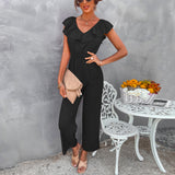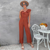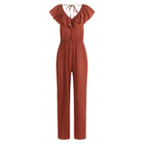 Women's Solid Color Open Back Off Shoulder Casual Jumpsuit