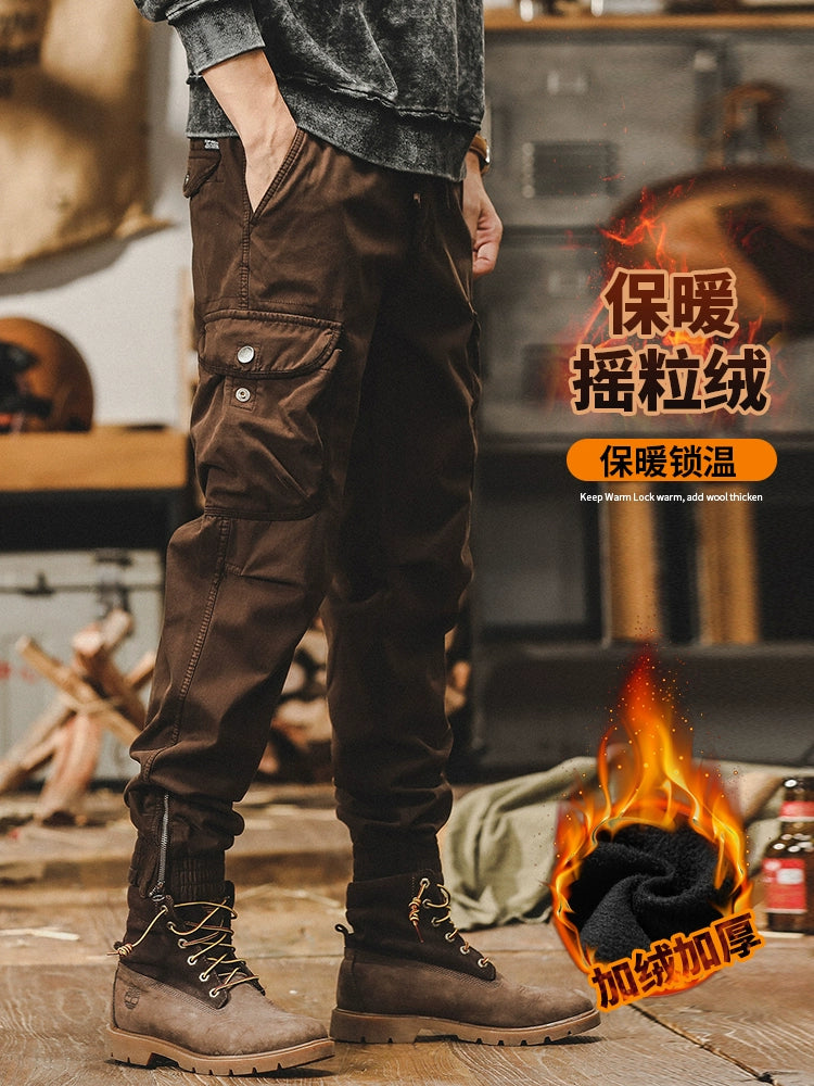 Fleece-lined Spring Zipper Outdoor Tactics Casual Pants Parka