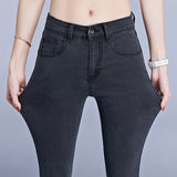 High Elastic 36 38 40 Stretch Jeans female washed denim skinny pencil pants