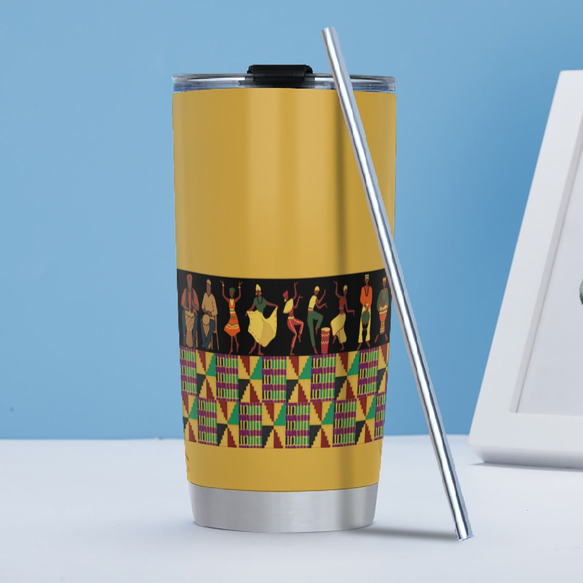 Kente Ring Tumbler 20oz (with Straw) - Orange