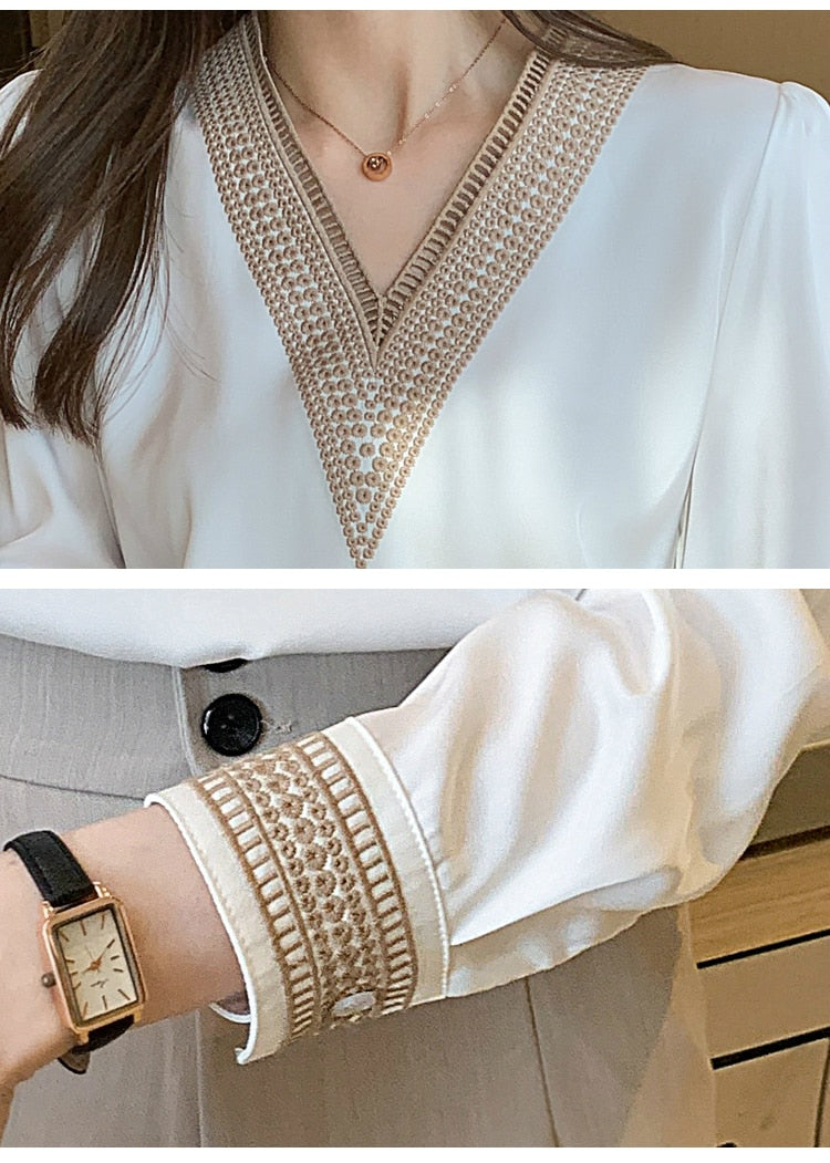 Long Sleeve White Blouse Tops Blouse Women Blusas Mujer De Moda 2021 Embroidery V-Neck Chiffon Blouse Shirt Women Blouses E226