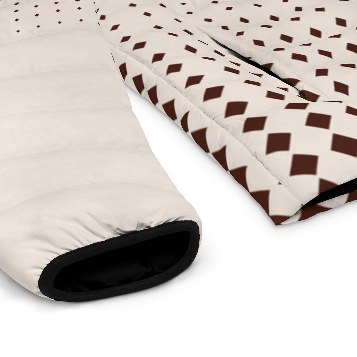 A custom puffer jacket is a grade-A upgrade to any wardrobe. This one comes with a stand-up collar, quilted lining, black cuff lining, and two spacious side pockets for added practicality. Each jacket is lightweight and super soft to the touch. Choose between two zipper color choices: black or dark blue.