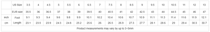 | US Size | 3.5 | 4 | 4.5 | 5 | 5.5 | 6 | 6.5 | 7 | 7.5 | 8 | 8.5 | 9 | 9.5 | 10 | 10.5 | 11 | 12 | 13 | |