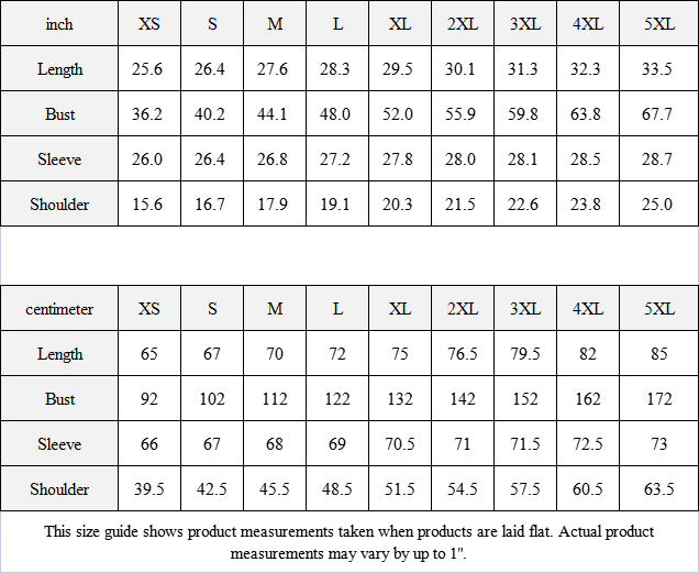 | inch | XS | S | M | L | XL | 2XL | 3XL | 4XL | 5XL | 6XL |