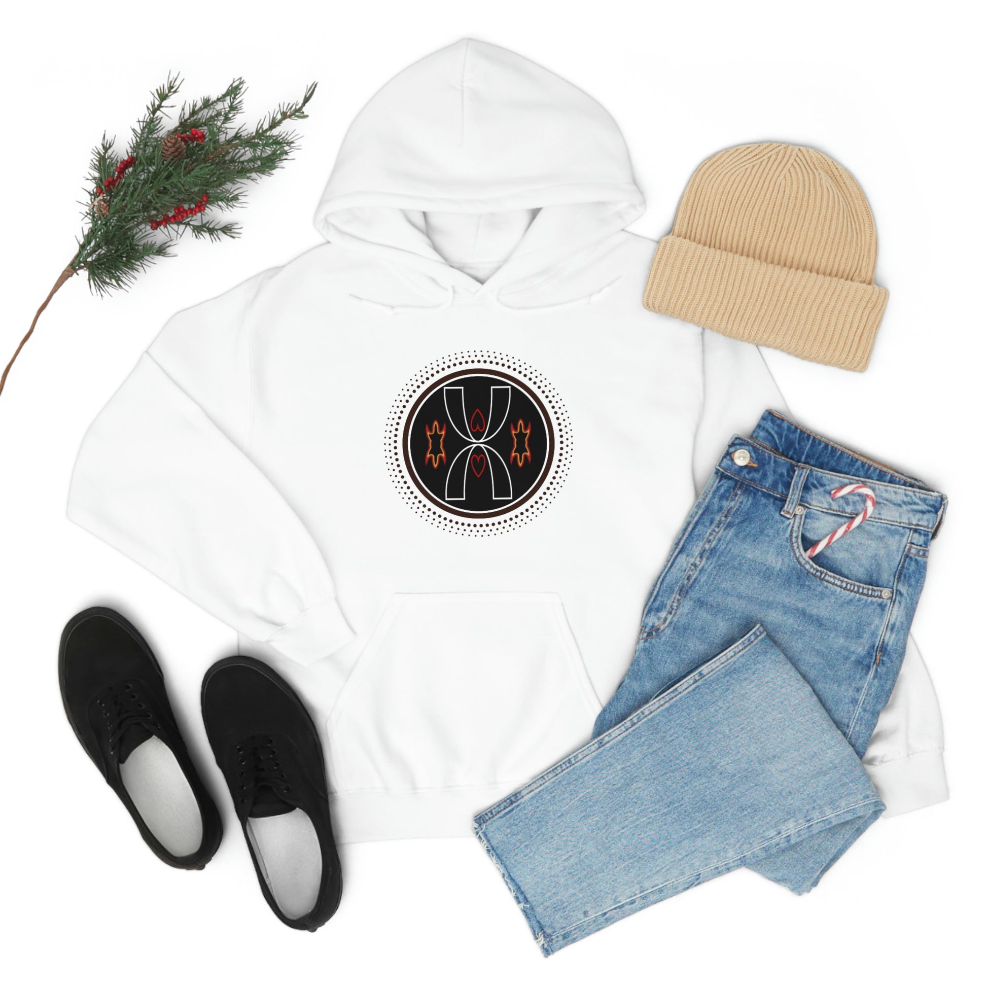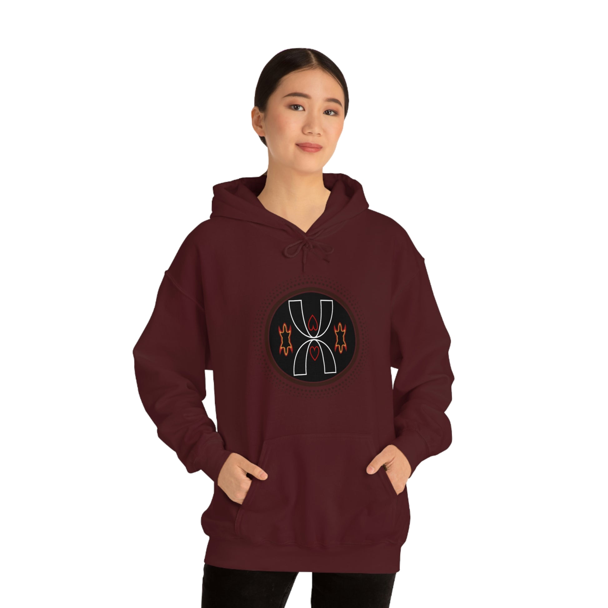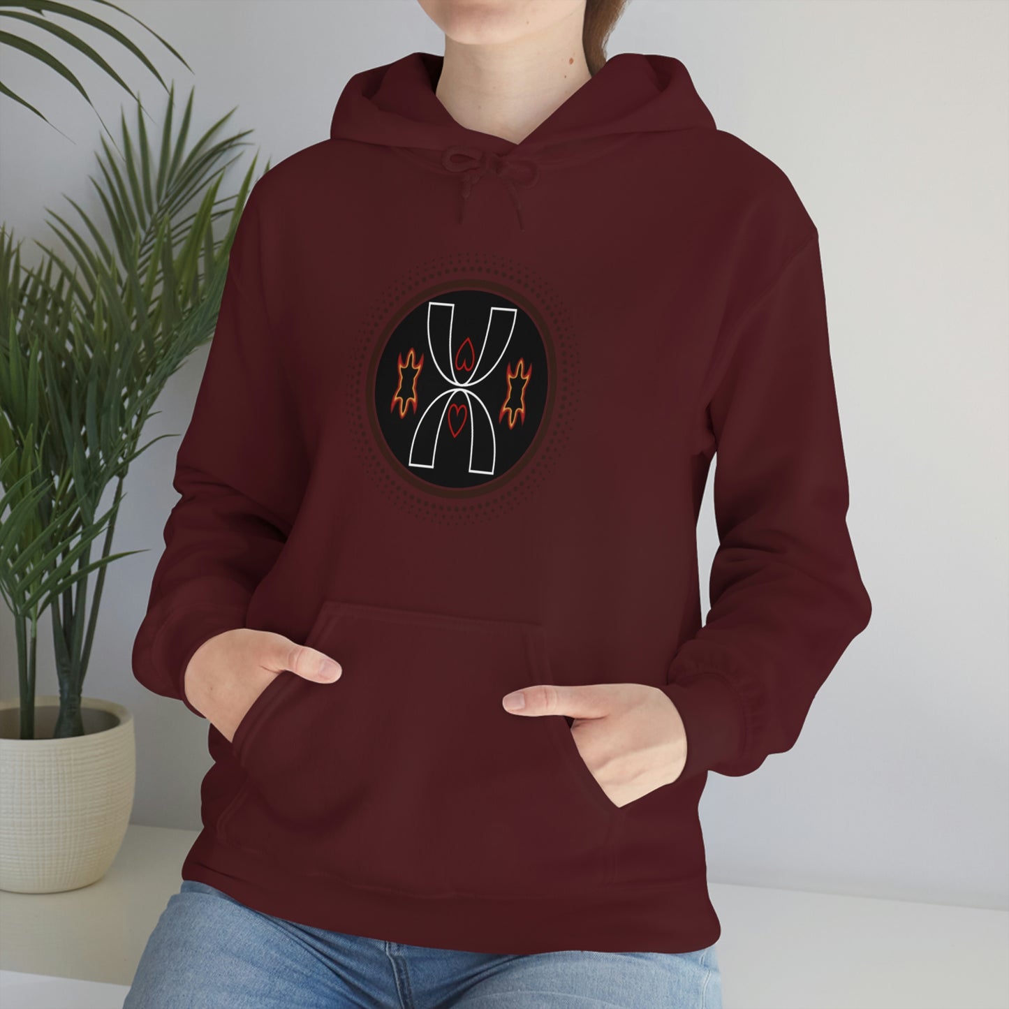 This unisex heavy blend hooded sweatshirt is relaxation itself. Made with a thick blend of cotton and polyester, it feels plush, soft and warm, a perfect choice for any cold day. In the front, the spacious kangaroo pocket adds daily practicality while the hood's drawstring is the same color as the base sweater for extra style points.