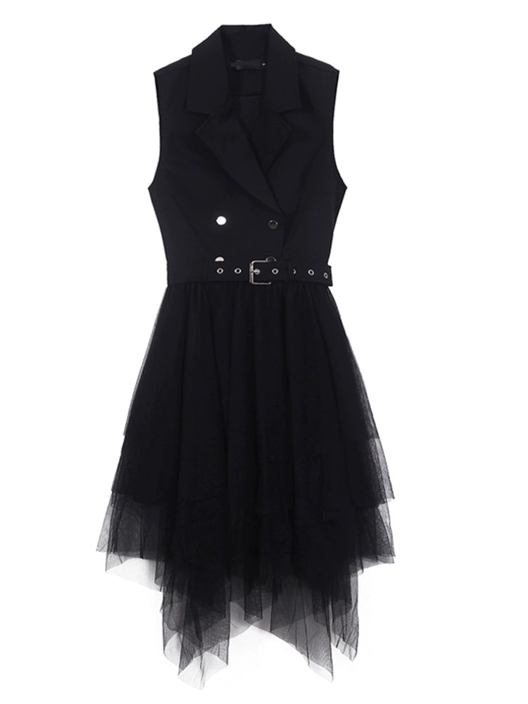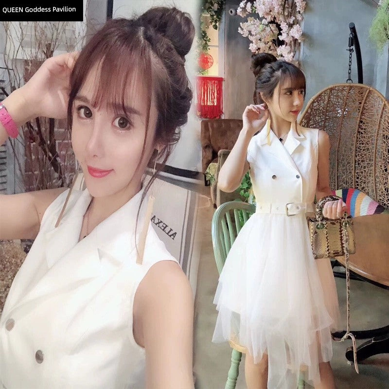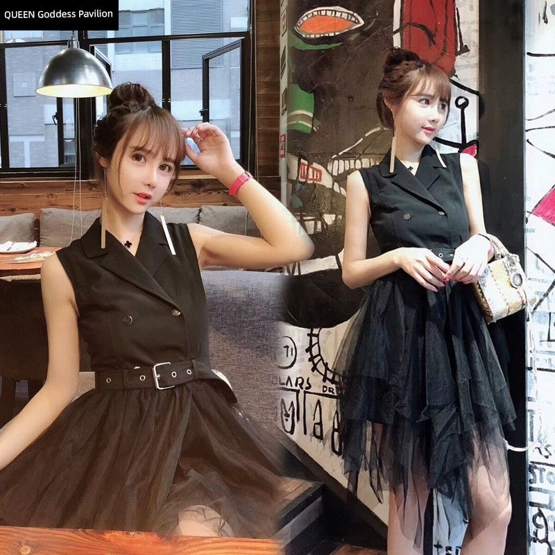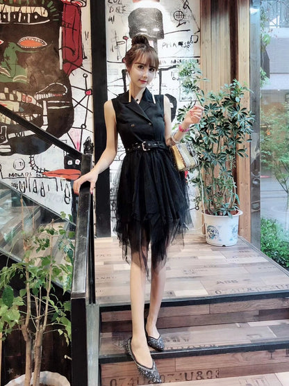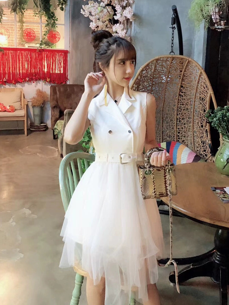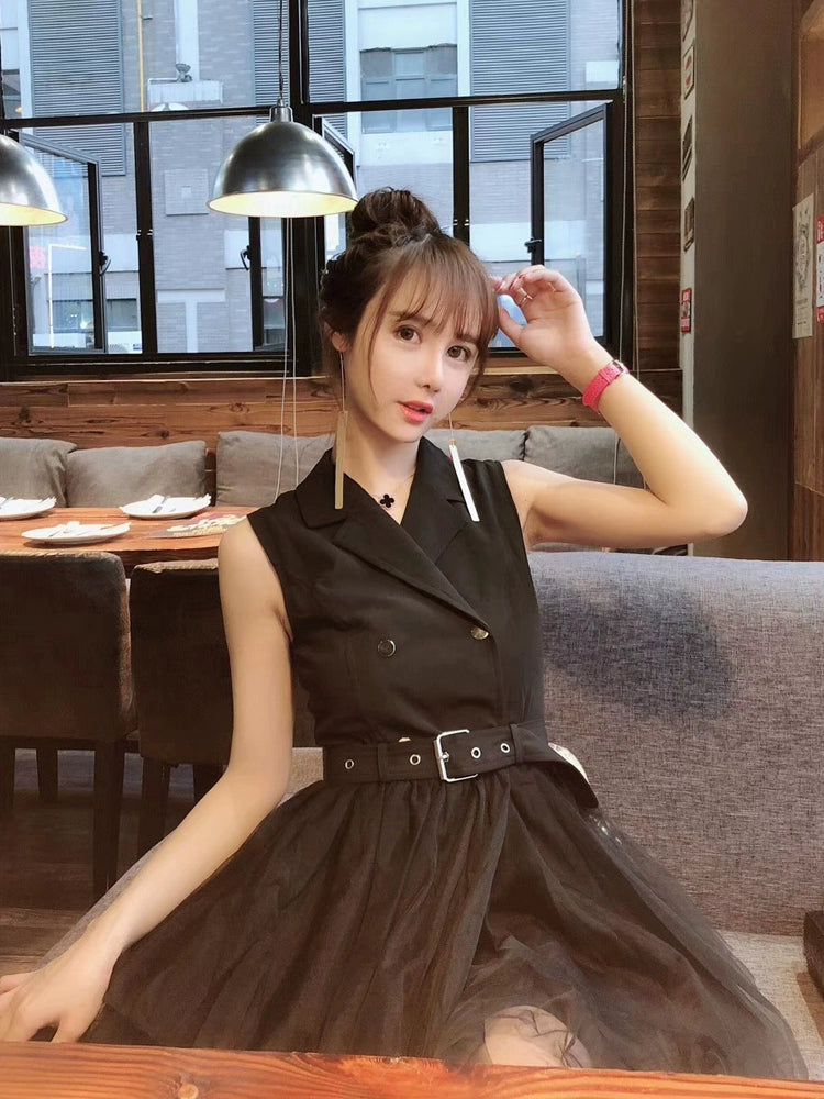 New Arrival K-style Elegant Suit Collar Double Breasted Sleeveless Dress