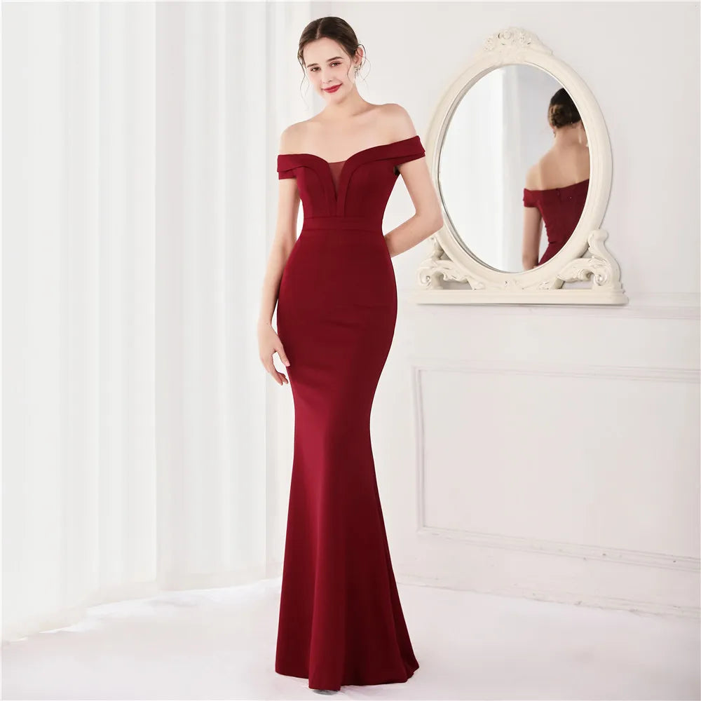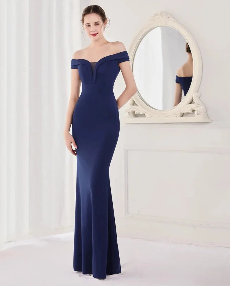Off Shoulder Soft Satin Maxi Dress