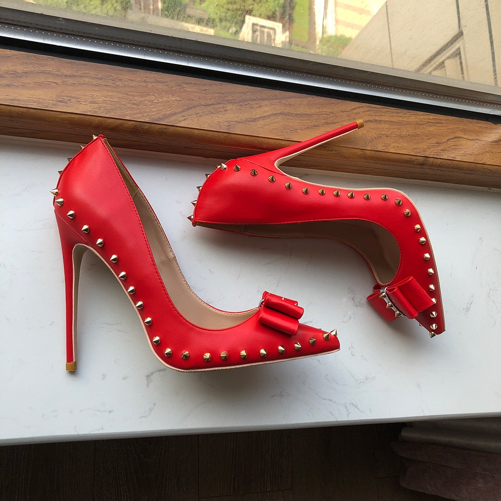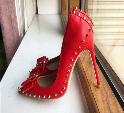 Red Matte Pointy Toe High Heel with Bow Sexy Spikes