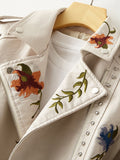 Retro Floral Print Embroidery Faux Soft Leather Jacket