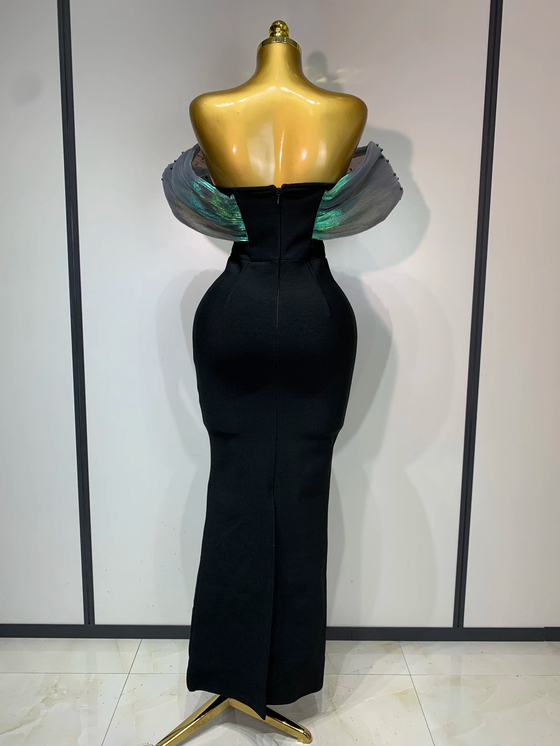 Sexy Off Shoulder Beading Bodycon Long Bandage Dress