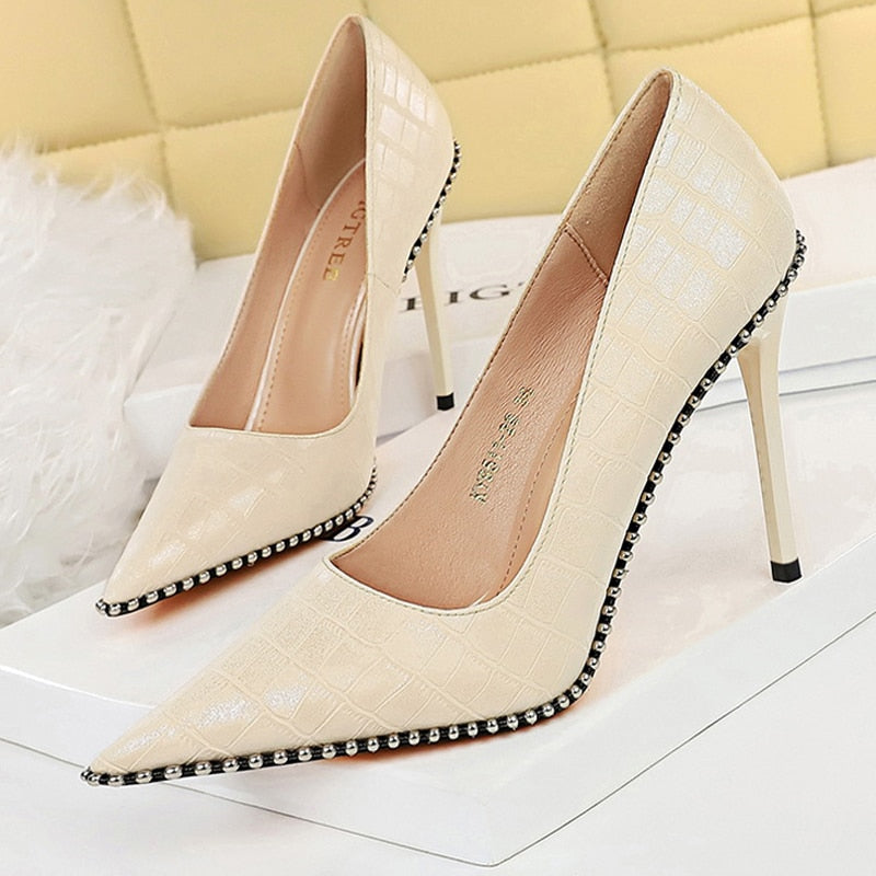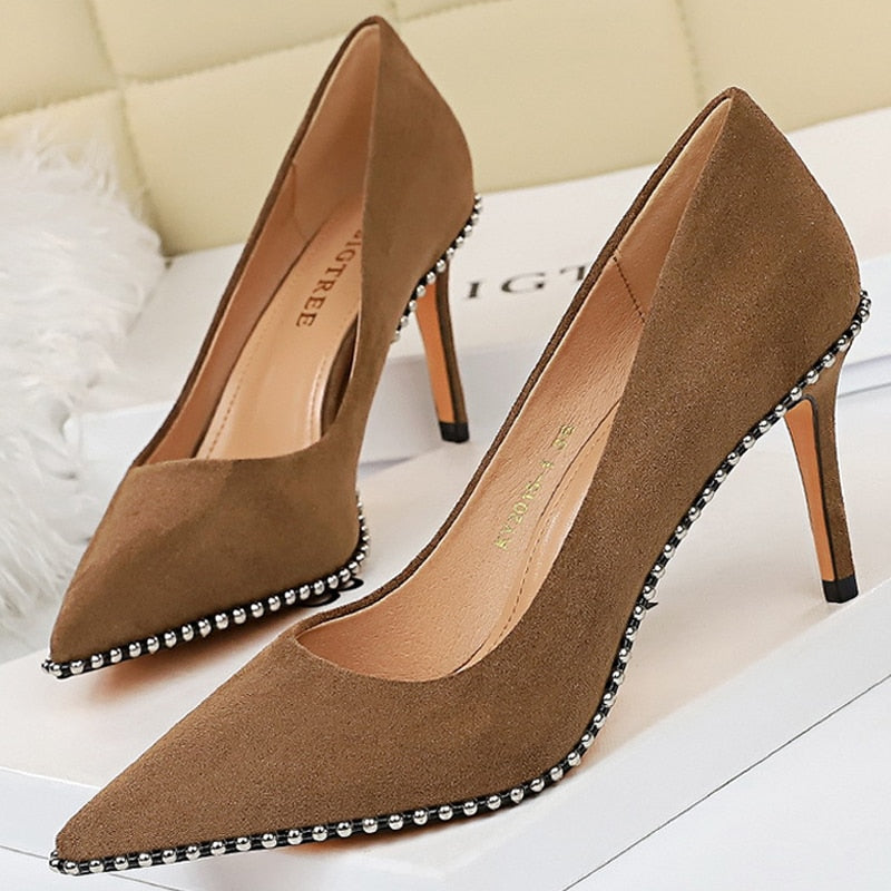 I liked the shoes immediately, look expensive and dignified. Well-made, all seams are smooth, beads are glued neatly. Put spare heels. I took 37 in size, I wear 36 ,23,5 cm in foot length. Fit perfectly, do not press and not big, comfortable legs. I definitely recommend buying.