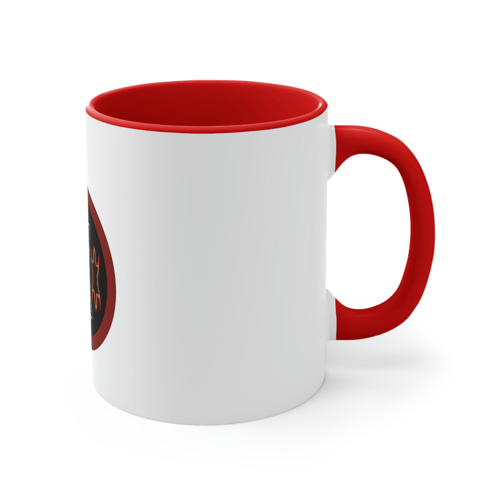 Add some color to your routine with this two-tone, custom accent coffee mug. This 11oz mug features an accented C-Handle that is comfortable to use, as well as an accented interior to add more contrast and character. With your design on this mug, you get an instant winner of a product.