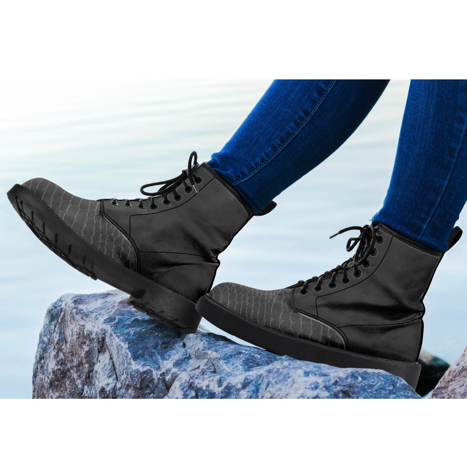 Trendy Faux Croc-Skin Leather Boots - Men