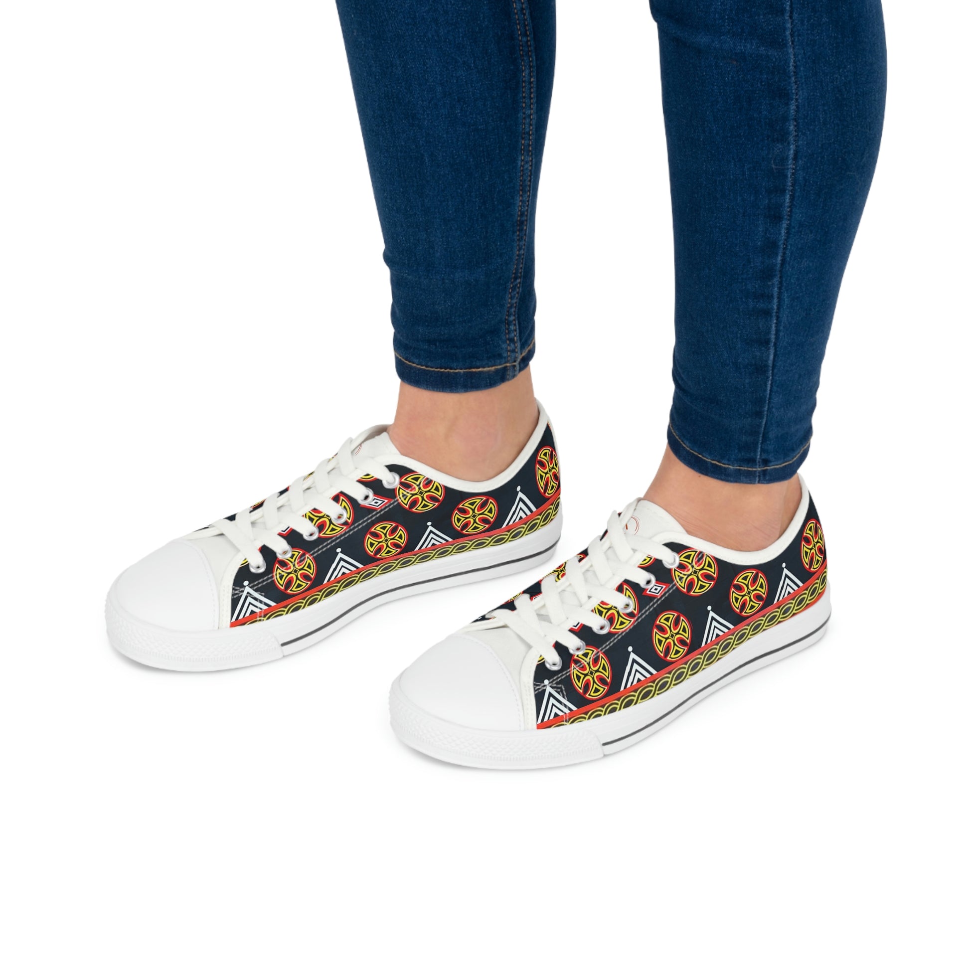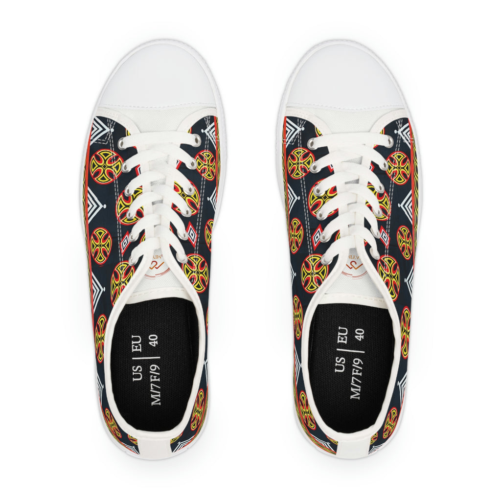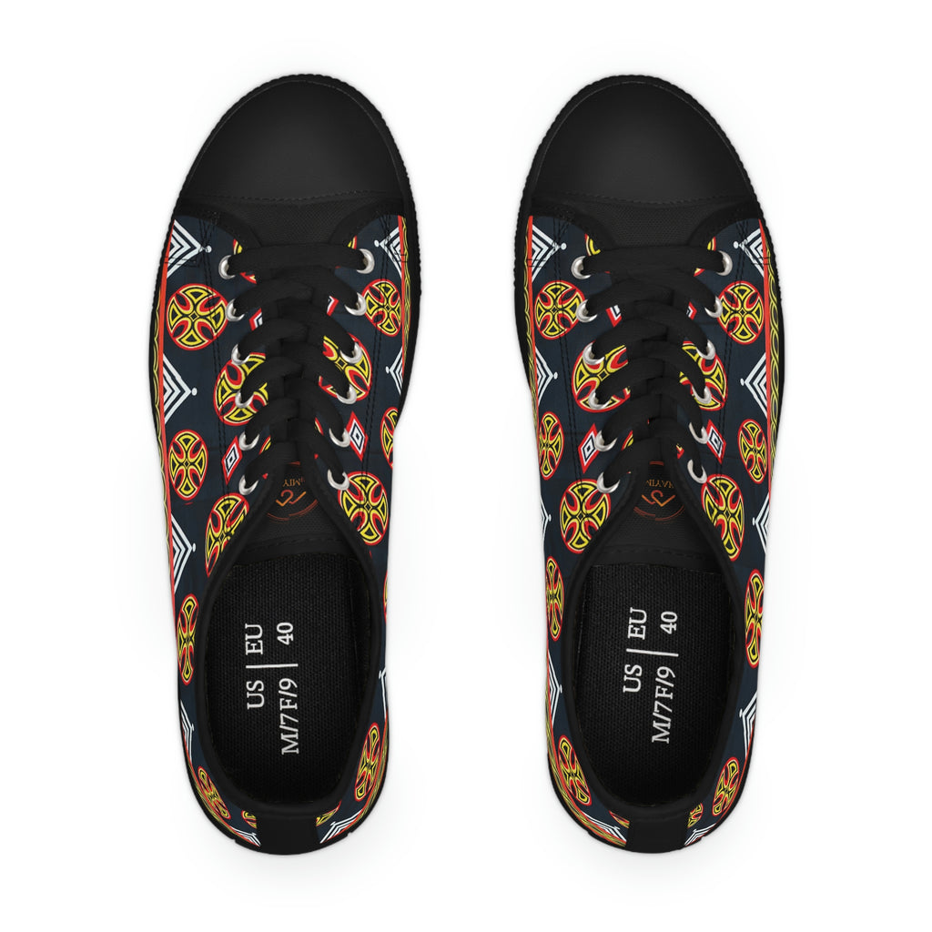 Made with breathable polyester canvas and featuring hi-poly deodorant memory foam insoles, these women's low top sneakers bear all the marks of an awesome shoe. Choose between black or white sole and laces, and enjoy the silver metal eyelets along with the lace-up closure. Add your designs and bring a bespoke staple to life.